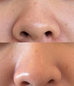 (写真はハイドラフェイシャルとお顔の脱毛 1回施術のビフォーアフターです!)